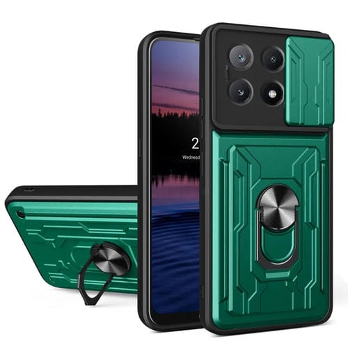 Funda para Teléfono Xiaomi Poco X6 Pro con Ranura para Tarjeta y TPU + PC Deslizante (Verde Oscuro)