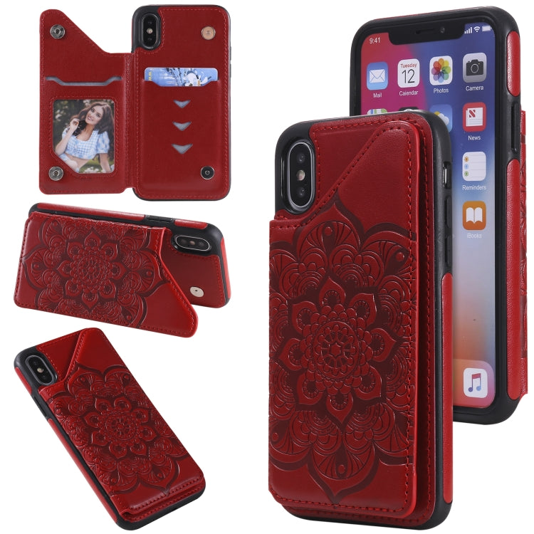 Funda Protectora para iPhone X / Xs con Soporte, Ranuras para Tarjetas y Marco de Fotos (Rojo)