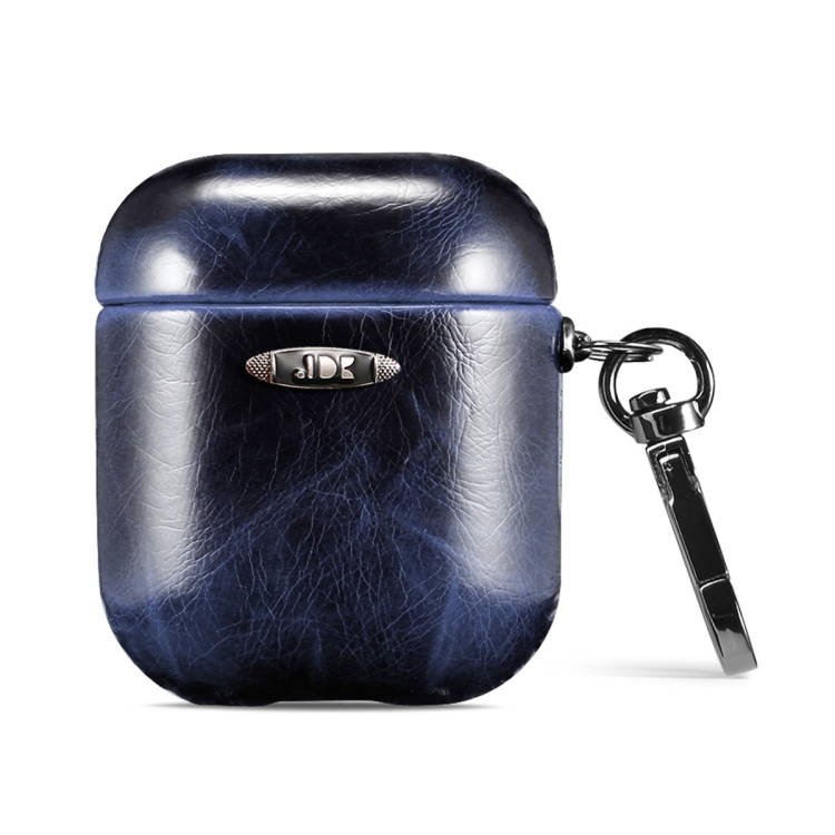 Funda Protectora Airpods 1/2 Textura Cera Aceite con Hebilla Colgada (Azul)