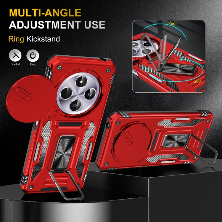 Funda Protectora para Teléfono Redmi 14C Armor PC + TPU con Cámara (Roja)