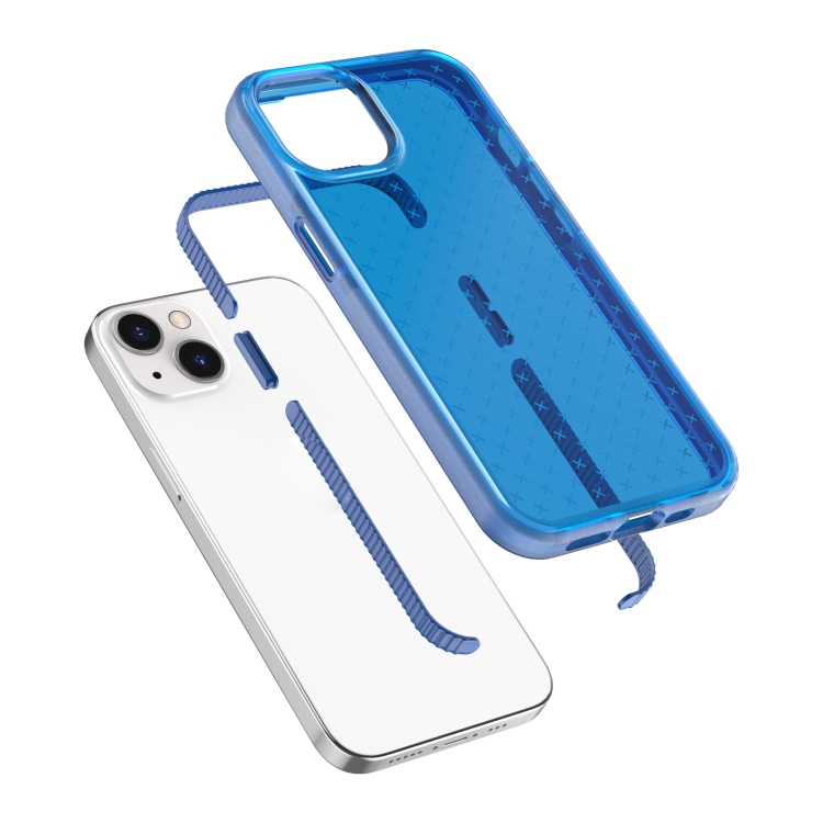 Funda Telefónica Transparente iPhone 13 Mini Patrón de Cuadrícula a Prueba de Golpes (Azul)