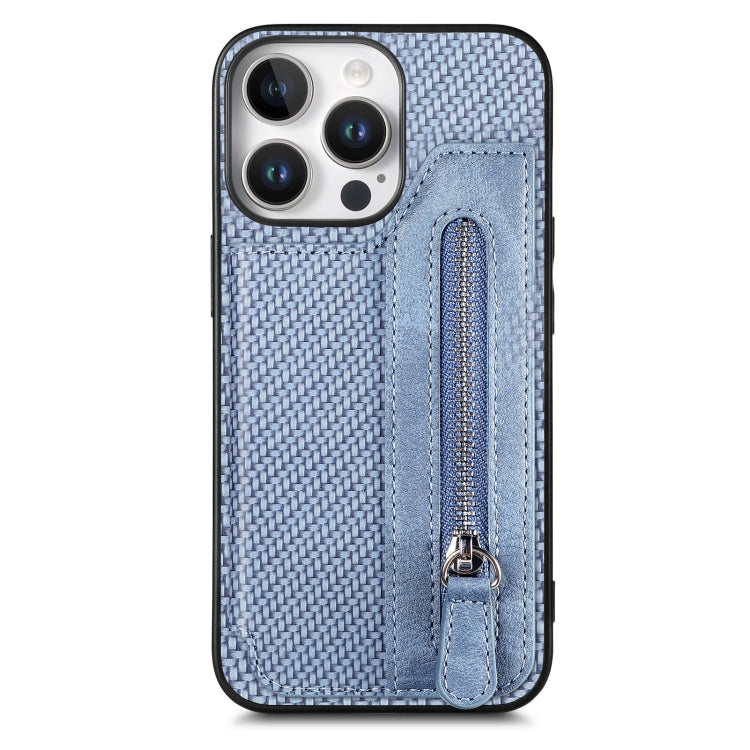 Funda Tipo Billetera Fibra de Carbono para iPhone 16 Pro Max con Cremallera y Tapa Horizontal (Azul)