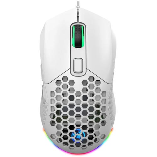- 1x Ratón para Juegos Hxsj X300 7200Dpi RGB Retroiluminación Intercambiable Tapa Trasera con Cable (Blanco)