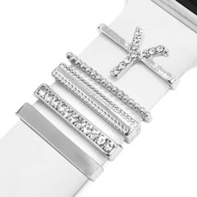 Juego de 5 anillos decorativos de metal con letras para reloj inteligente, estilo Y (银色)