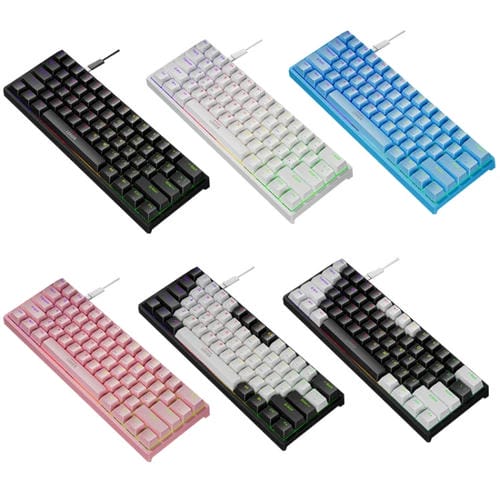 • 1x Teclado Mecánico Leaven K620 61 Teclas Hot Plug-In Iluminado con Cable 1,8 m (Negro, Blanco, Verde)
