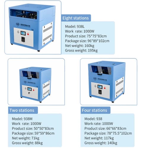 La Máquina Pulidora Molino de Agua TBK 938 es un equipo profesional diseñado para la Reparación y pulido de Pantallas de Teléfonos Móviles. Compatible con diversos modelos, esta Máquina multiestación permite trabajar simultáneamente con dos o cuatro dispositivos, optimizando la eficiencia en procesos de restauración de Pantallas dañadas por rayones. Incorpora una Pantalla LCD inteligente para un control preciso y sencillo de las funciones, junto con un sistema de circulación de agua que facilita el pulido mediante un molino de agua. Su Potencia de 1000W y la bomba de aire silenciosa con válvula electrónica de presión constante aseguran un rendimiento estable y controlado durante el proceso. El equipo funciona con Alimentación de 110V/220V y cuenta con almohadillas de pulido de lana profesional que garantizan un acabado cuidadoso en cada Reparación.