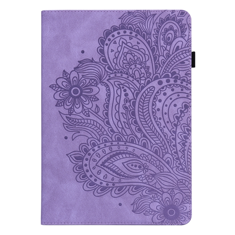 Funda Tablet TPU + PU Cuero Smart con Sueño / Despertador Pájaro En Relieve para iPad 5/6/7/8 2017 (Púrpura)