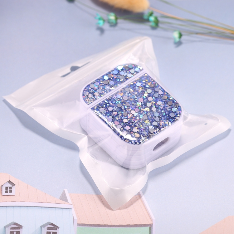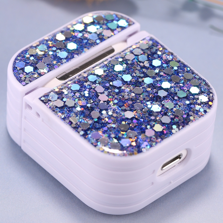 Funda Protectora Para Auriculares Inalámbricos Airpods 1/2 Glitter Sequins (Azul Oscuro)