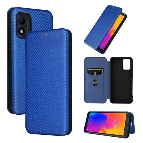 Funda de Cuero para Alcatel 1B 2022 con Textura de Fibra de Carbono (Azul)