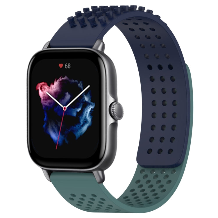 Correa de Silicona para Amazfit GTS 3 con Puntos 3D Transpirables y Orificios 20mm (Azul Medianoche + Verde Oliva)