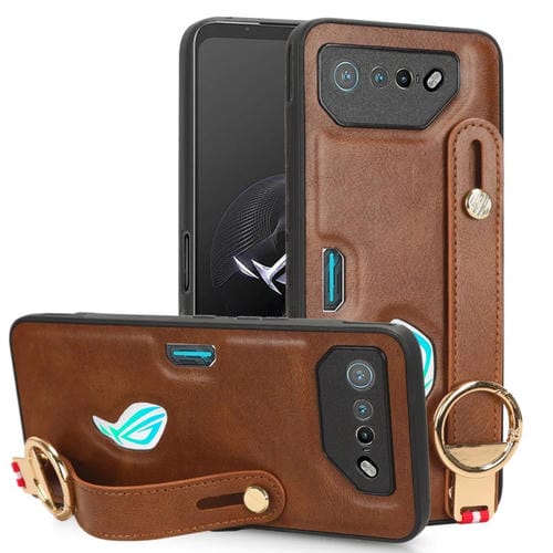 Funda Trasera de Cuero para Asus Rog Phone 7 Rog7 Muñequera para Teléfono (Marrón)