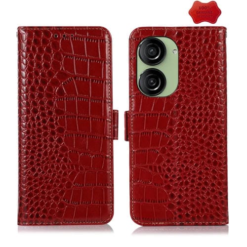 Estuche para Asus Zenfone 10 y Zenfone 9 de Cuero de Vaca con Capa Superior de Cocodrilo (Rojo)