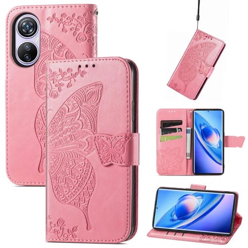 Funda de Cuero para BlackView A200 Pro Butterfly Love Flower en Relieve (Rosa)