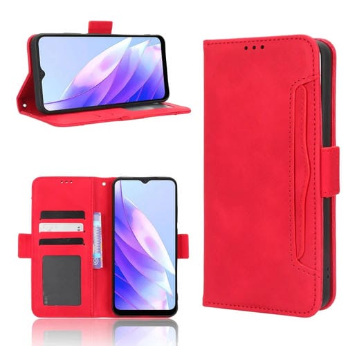 Funda de Cuero para BlackView A52 con Textura Becerro y Ranuras para Tarjetas (Rojo)