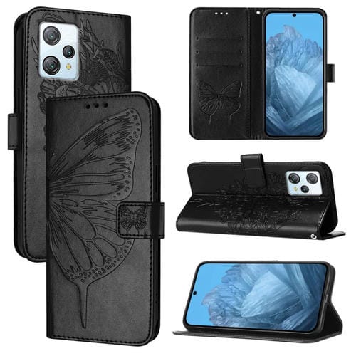 Funda de Cuero para BlackView A53 con Mariposa en Relieve (Negro)