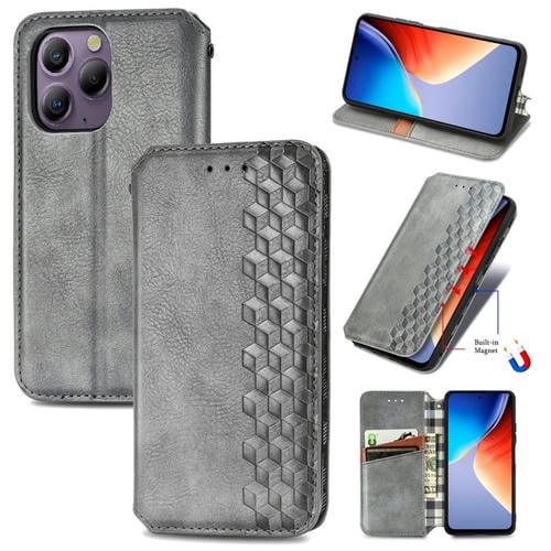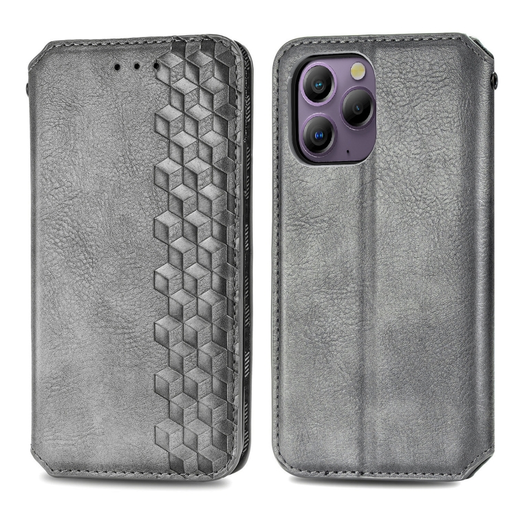 Funda de Cuero Magnético Prensado para BlackView A96 Cubic Grid (Gris)