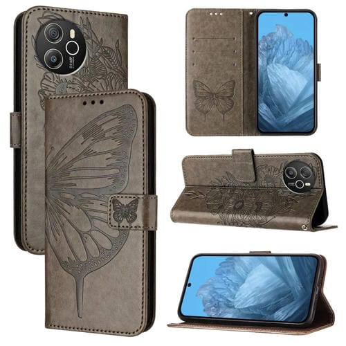 Funda de Cuero para BlackView Shark 8 con Mariposa en Relieve (Gris)