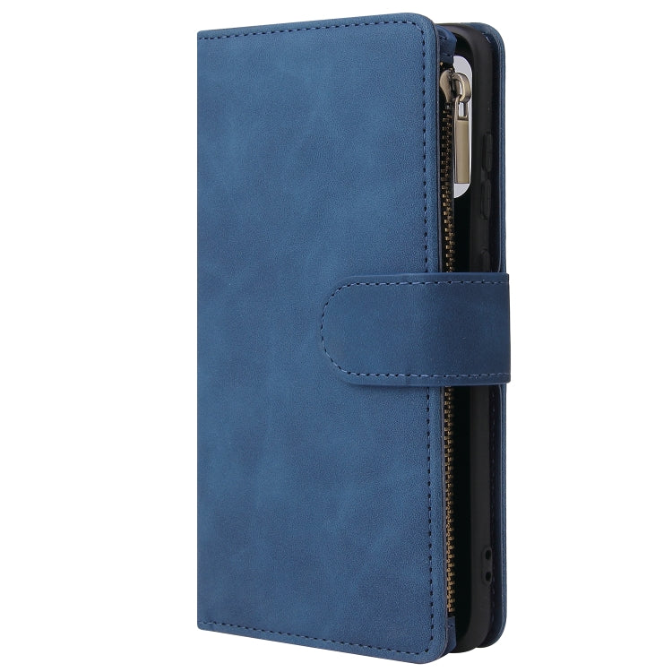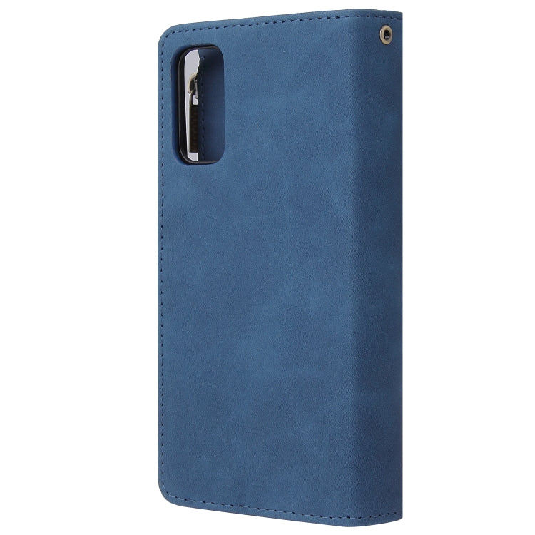 Estuche de Cuero para Galaxy S20 con Tapa Horizontal Multifuncional, Ranura para Tarjeta, Soporte, Billetera con Cremallera y Marco de Fotos (Azul)