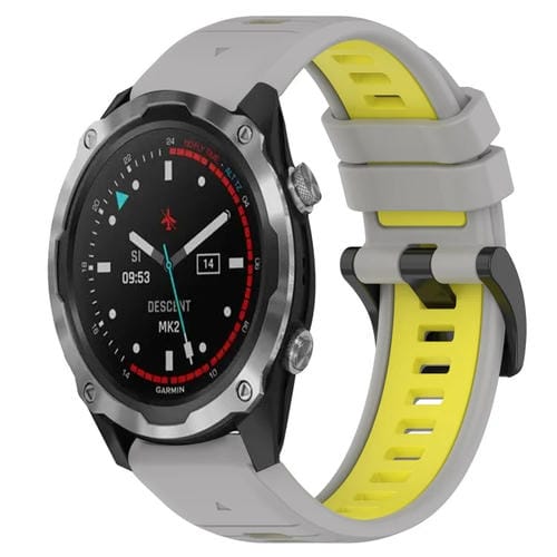 Correa de silicona deportiva para Garmin Descent Mk 2 26mm (Gris + Amarillo)