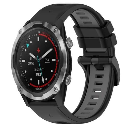 Correa de silicona deportiva para Garmin Descent Mk 2 26mm (Negro + Gris)
