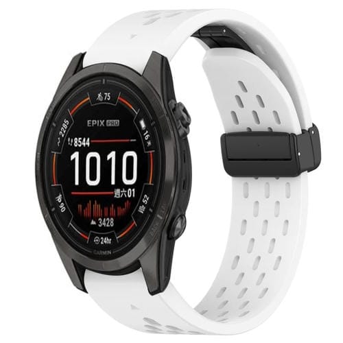 Correa de Reloj para Garmin Epix Pro 42mm 20mm Silicona con Orificio y Hebilla Plegable (Blanco)