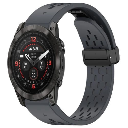 Correa de Silicona para Garmin Epix Pro con Hebilla Plegable Magnética y Orificios 51mm (Gris Oscuro)