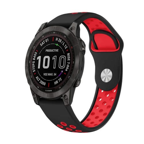 Banda de Reloj 22mm para Garmin Fenix 7 Sports de Silicona Transpirable (Negro + Rojo)
