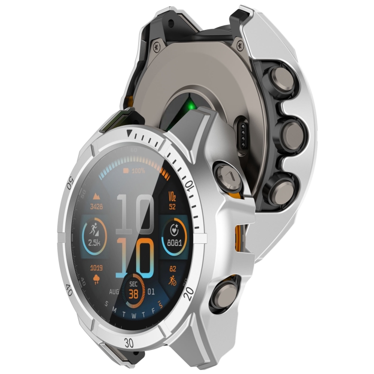Para Garmin Fenix 8 MIP 51 mm, carcasa de reloj de PC integrada con película templada y escala solar (negro plateado)