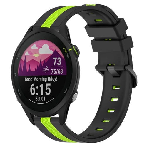 Banda de Reloj de Silicona Para Garmin Forerunner 255 Music 22mm Dos Colores (Negro + Verde Lima)