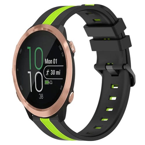 Banda de Reloj para Garmin Forerunner 645 Music Silicona Dos Colores Vertical 20mm (Negro + Verde Lima)