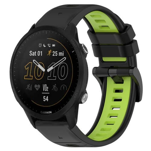 Correa de Silicona para Garmin Forerunner 955 22mm Sports Bicolor (Negro + Verde Lima)