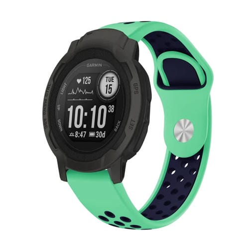 Correa de Silicona para Garmin Instinct 2 22mm Deportiva Transpirable (Verde Menta + Azul Medianoche)