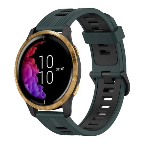 Banda de Reloj de Silicona para Garmin Venu Patrón Vertical 20mm (Verde Oliva + Negro)