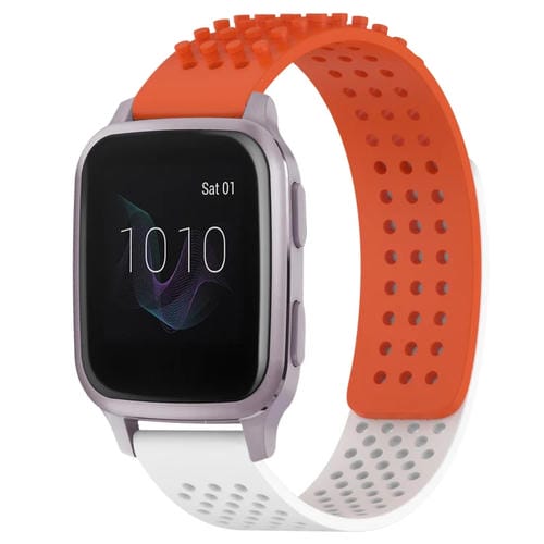 Correa de Reloj para Garmin Venu Sq Silicona Transpirable 20mm (Naranja + Blanco)