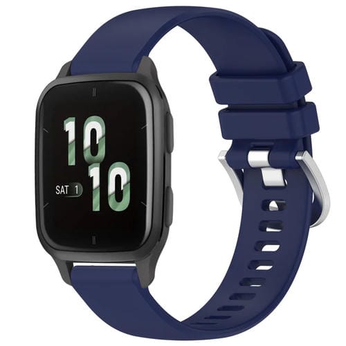 Correa de Silicona para Garmin Venu Sq2 con Hebilla Plateada Líquida Brillante (Azul Oscuro)