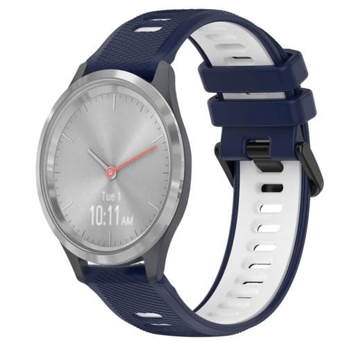 Correa para Garmin Vivomove 3S 18mm Silicona Deportiva Dos Colores (Azul Medianoche + Blanco)