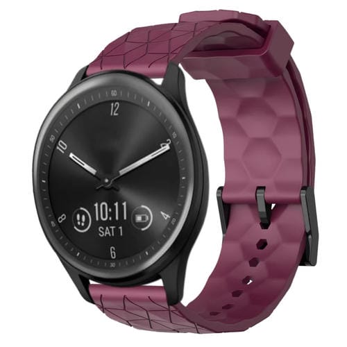 Banda de Reloj Silicona para Garmin Vivomove Sport 20mm Patrón de Fútbol (Rojo Vino)