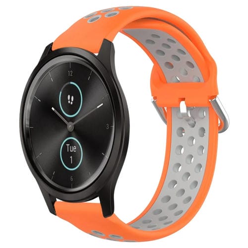 Banda de Reloj de Silicona Deportiva para Garmin Vivomove Style 20mm Transpirable Perforada (Naranja + Gris)