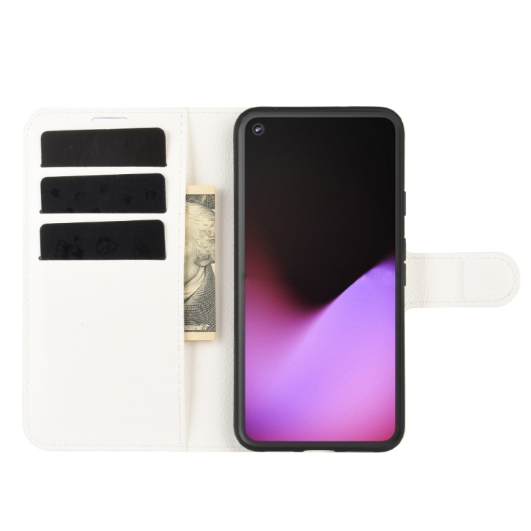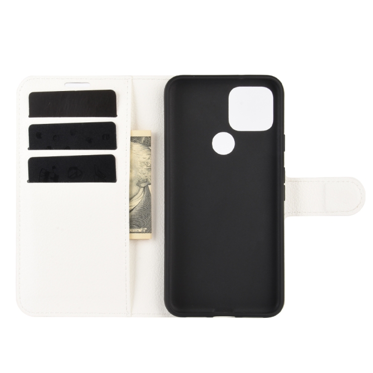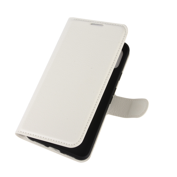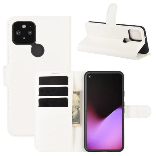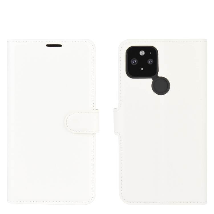 Funda Protectora Google Pixel 5 XL Litchi Texture con Tapa Horizontal, Soporte, Ranuras para Tarjetas y Billetera (Blanco)