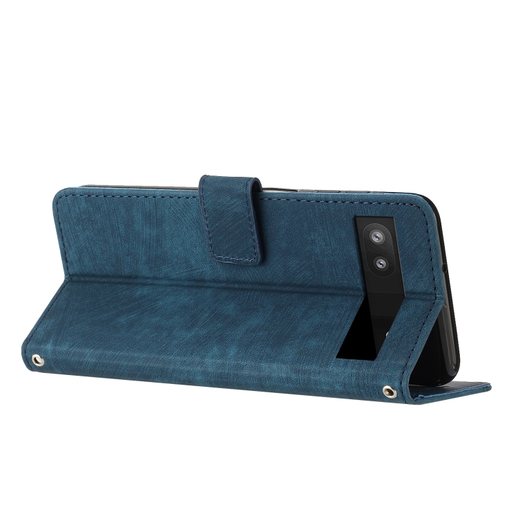 Funda de Cuero para Google Pixel 6A Skin Feel Stripe Pattern con Cordón (Azul)