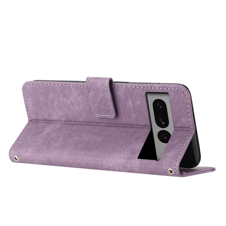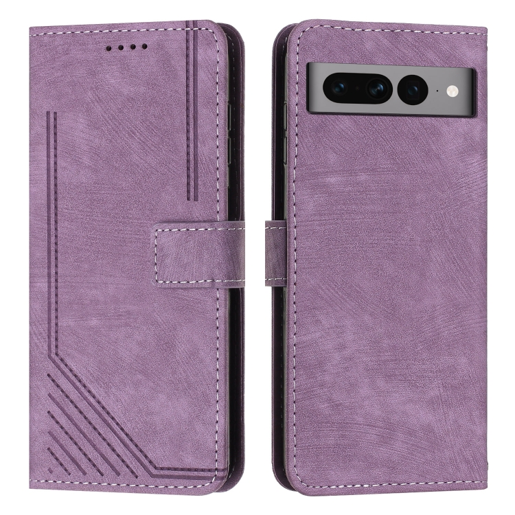 Funda de Cuero para Google Pixel 7 Pro con Cordón y Skin Feel Stripe Pattern (Púrpura)