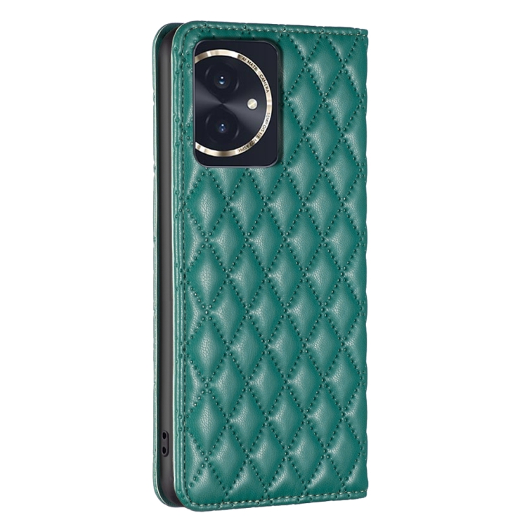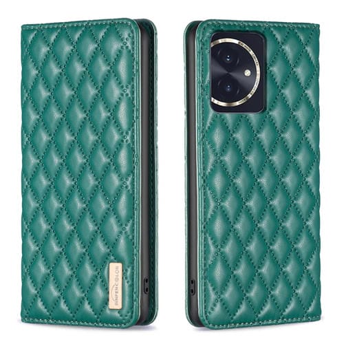 Funda para Honor 100 con Tapa de Cuero Magnético Diamond Lattice (Verde)