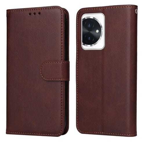 Funda para Teléfono Honor 100 de Cuero con Tapa y Textura de Becerro Clásica (Marrón)