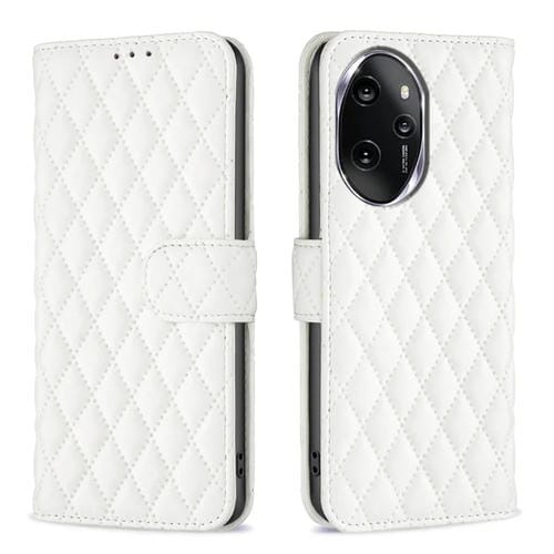 Funda de Cuero con Tapa para Honor 100 Pro Diamond Lattice (Blanco)