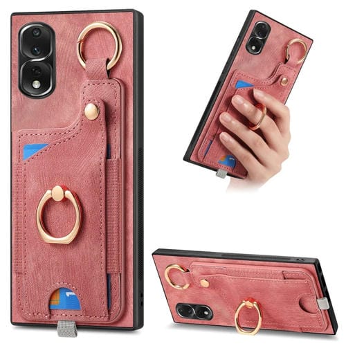 Funda para Honor 80 Pro con Bolsa para Tarjeta, Anillo y Lazo para Colgar (Rosa)