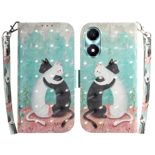 Funda para Honor X5 Plus y Play 40C de Cuero con Tapa Horizontal 3D (Gato Blanco y Negro)