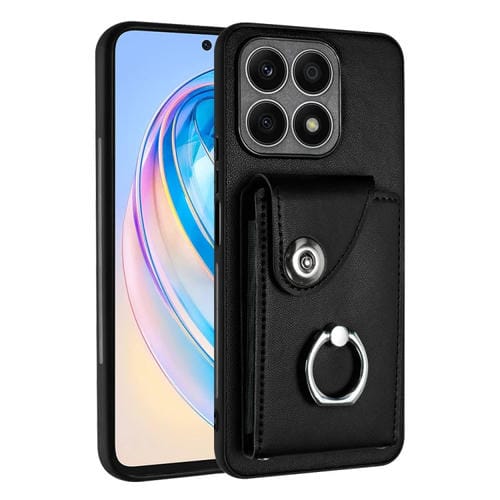 Funda para Honor X8A de PU con Soporte para Anillo y Bolsa para Tarjeta (Negro)