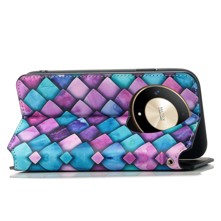 Estuche de Cuero Magnético Caseneo para Honor X9B con Diseño Colorido (Escamas Moradas)
