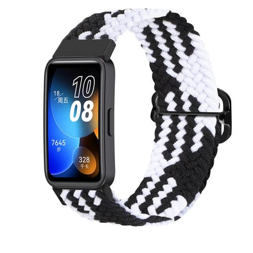 Correa de Reloj Trenzada para Huawei Band 9 con Hebilla Deslizante Ajustable (Blanco Negro)