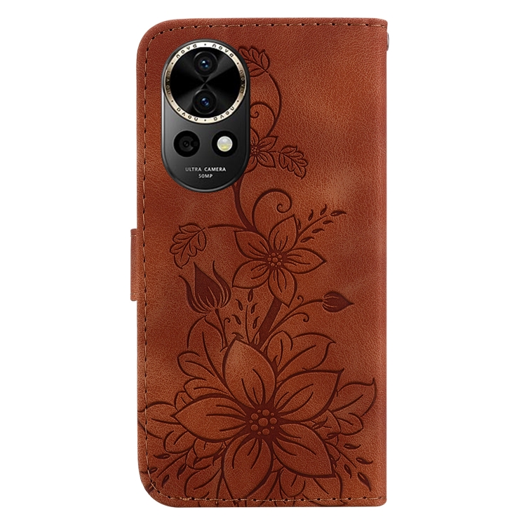 - 1x Funda de Cuero para Huawei Nova 12 con Relieve Lily (Marrón)